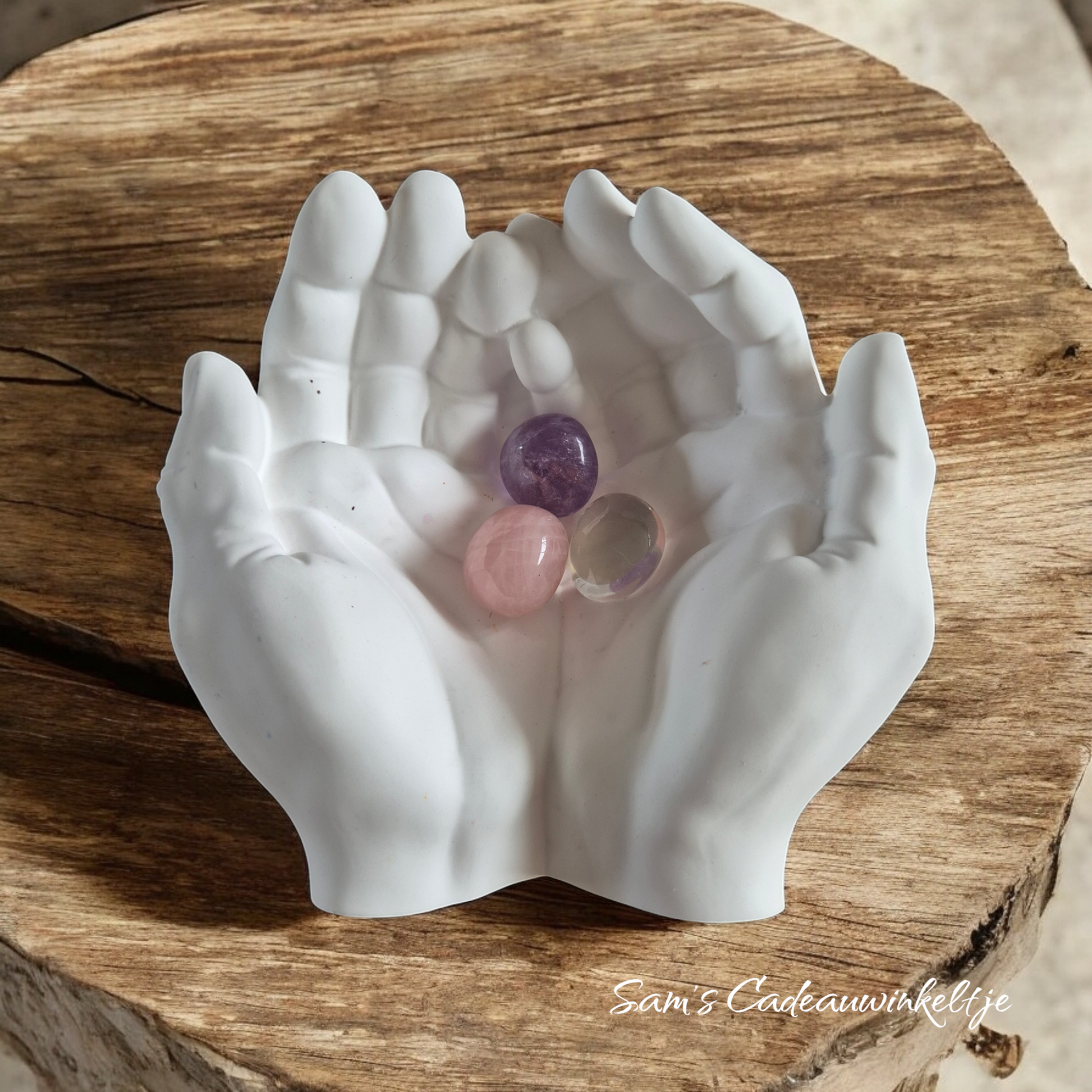De gouden driehoek is een combinatie van Bergkristal, Amethist en Rozekwarts. Wanneer je ze bij elkaar legt, stralen ze een optimale en positieve energiestroom. De energie van deze 3 stenen werken zo goed met elkaar qua energie, dat ze daarom dit wonder de naam ''De gouden Driehoek'' hebben gegeven.