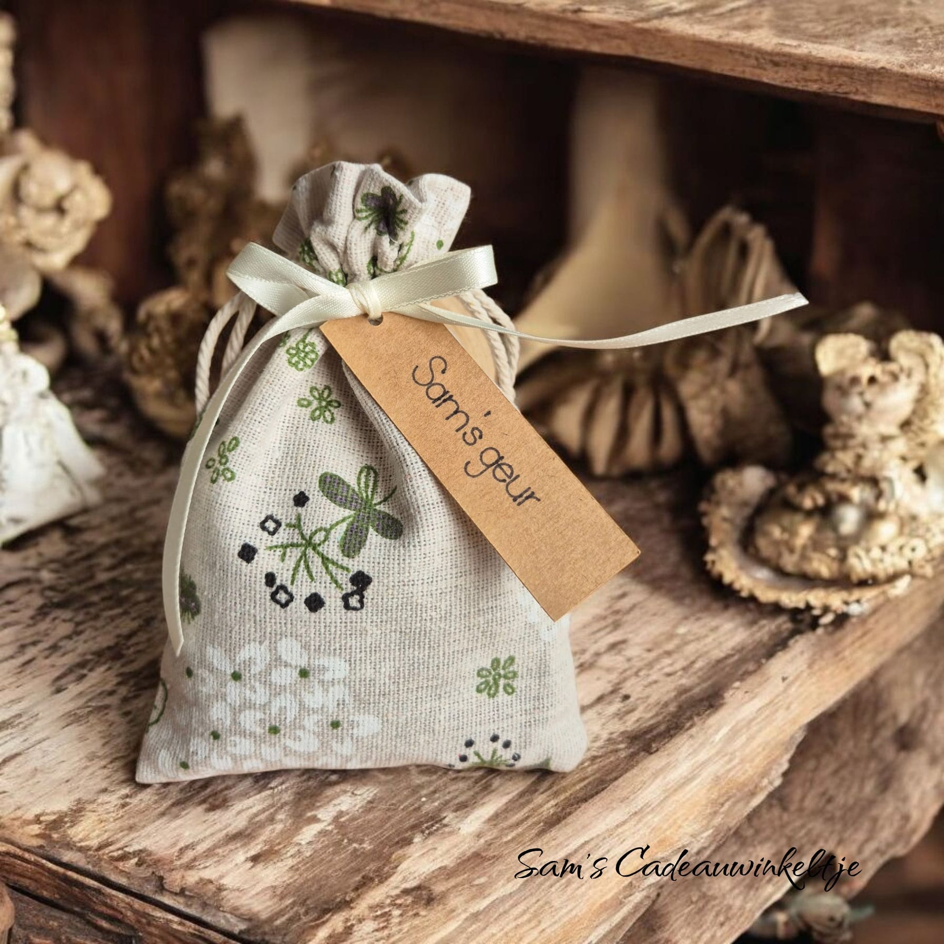 Deze prachtige geurzakjes (10x10 cm) zijn niet alleen decoratief, maar verspreiden ook een heerlijke geur in je huis, kast of auto. Het linnen/jute zakje laat de geur optimaal door. šæ