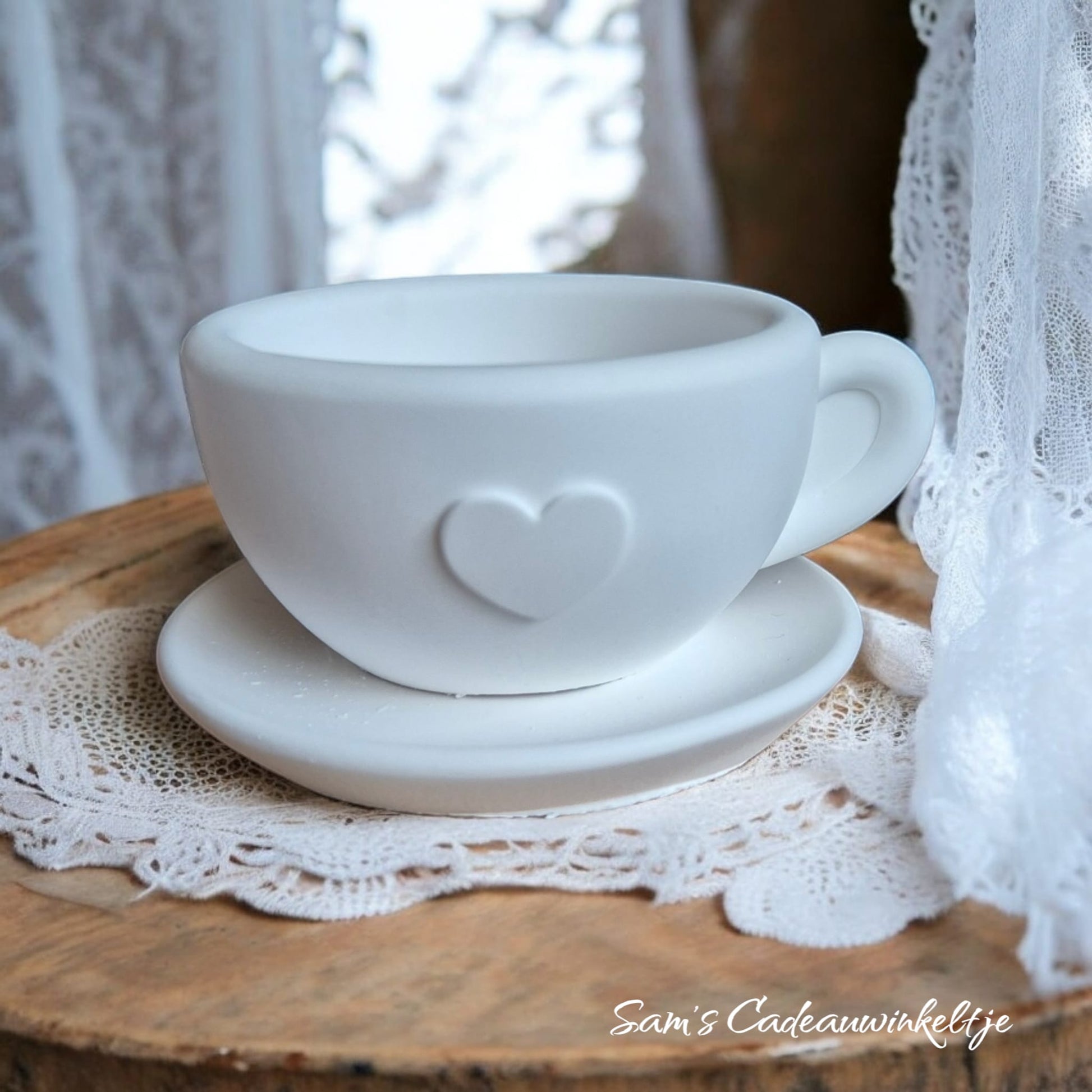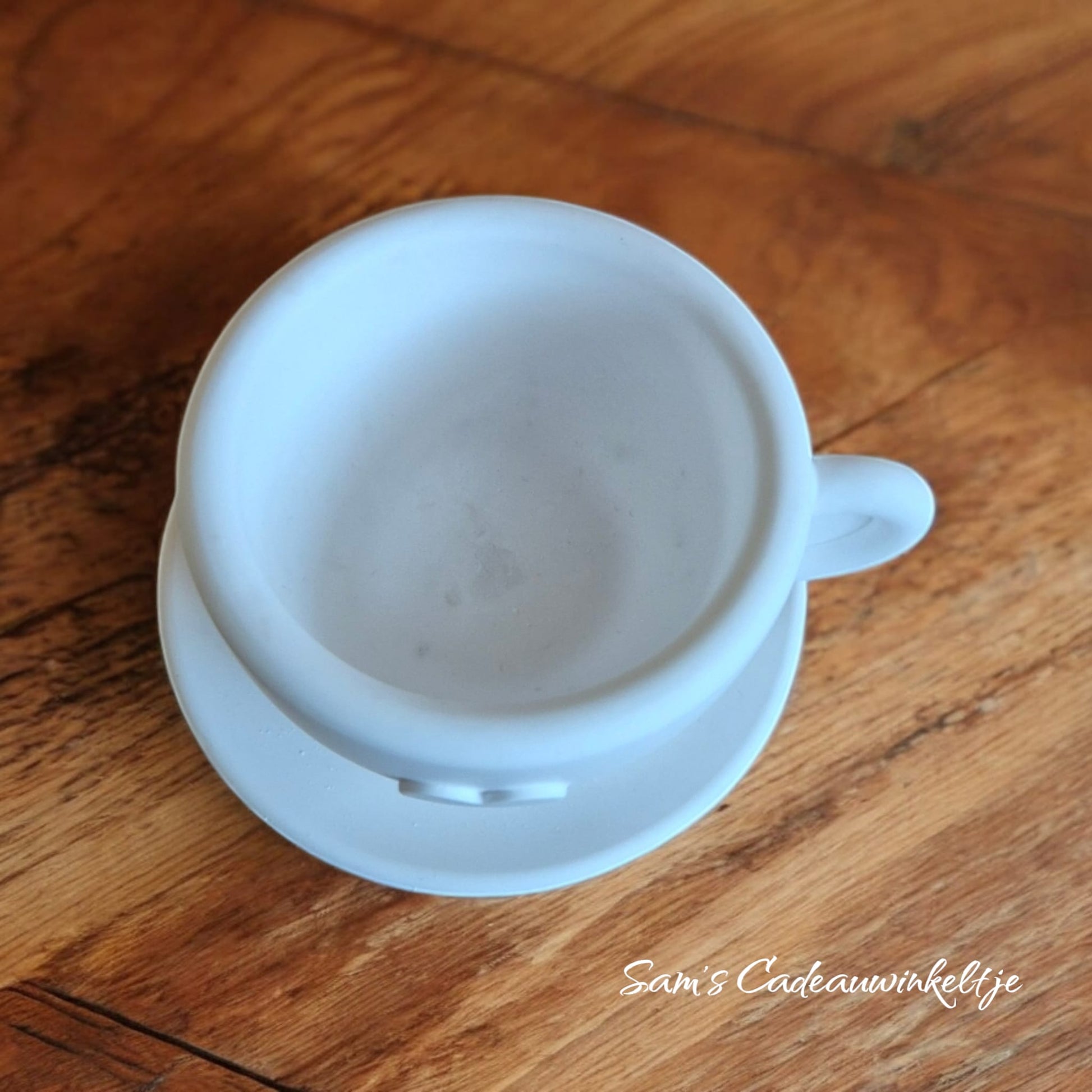 Handgemaakt Kop en Schoteltje van Porseleingips