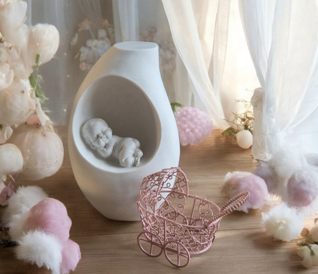 Deze prachtige, handgemaakte geboortesteen is gegoten met porseleingips en een uniek aandenken aan een speciale geboorte. Met zijn stevige formaat en elegante uitstraling is het een mooie decoratie voor de babykamer of een bijzonder kraamcadeau.