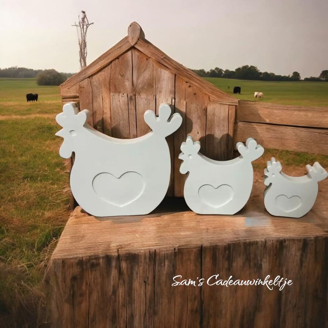 Hoe leuk is dit decoratieve setje kippen? Ze zijn handgemaakt van porseleingips, wat elk exemplaar uniek maakt.